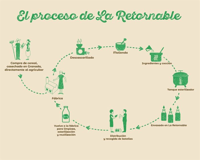Así que no, no estamos hablando de una utopía sino de una realidad. Por ahora existe de una manera muy acotada, y muy afortunadas son las personas de Granada que pueden tener acceso a estos productos. Al final, estamos hablando de que La Retornable es la única fábrica de bebidas vegetales de envase retornable. Pero esperamos que la idea de este modelo de negocio se extienda dadas las grandes y sanas ventajas que ofrece.
