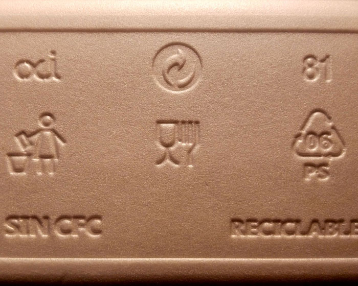 Imagen: símbolos diversos en el reverso de una bandeja de poliespán.